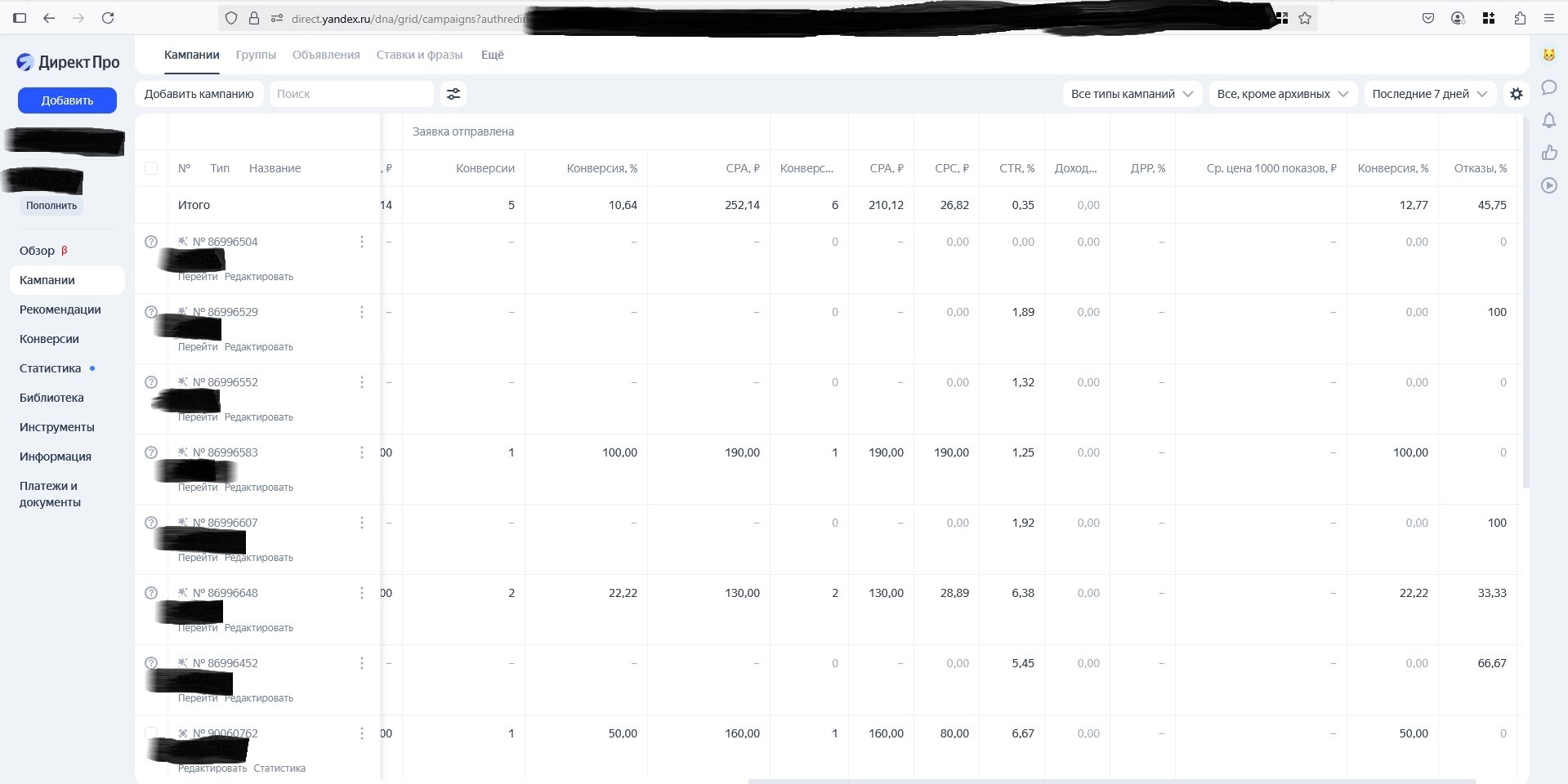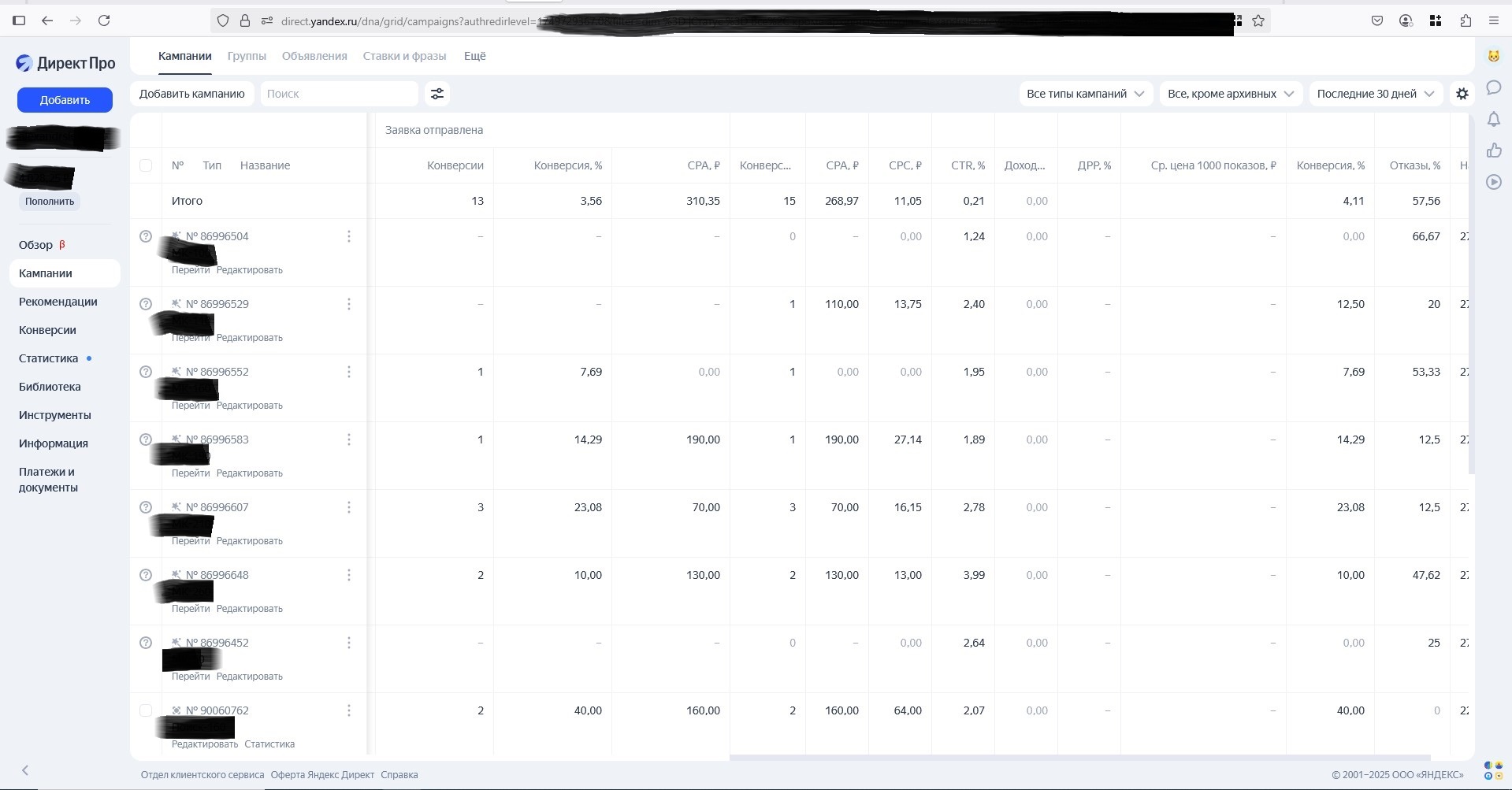 Кейс выбран заурядный, не примечательный ни чем, пожалуй, кроме цены - 250 рублей за лид без ндс. Для потолков это цена ниже средней, обычно выходит дороже. Город миллионник, самый обычный клиент без каких-то особых запросов, сайт – простой лендинг без квиза. На этом аккаунте настроен наш стандартный набор рекламных кампаний: Мастер Кампаний, РСЯ, и Поиск с оплатой за конверсии, но с РСЯ-шной ставкой. Хинт: такие рк приносят немного заявок (до 10%), поэтому погоды не делают. Зато позволяют получать горячие поисковые лиды по халявной РСЯ-шной цене.