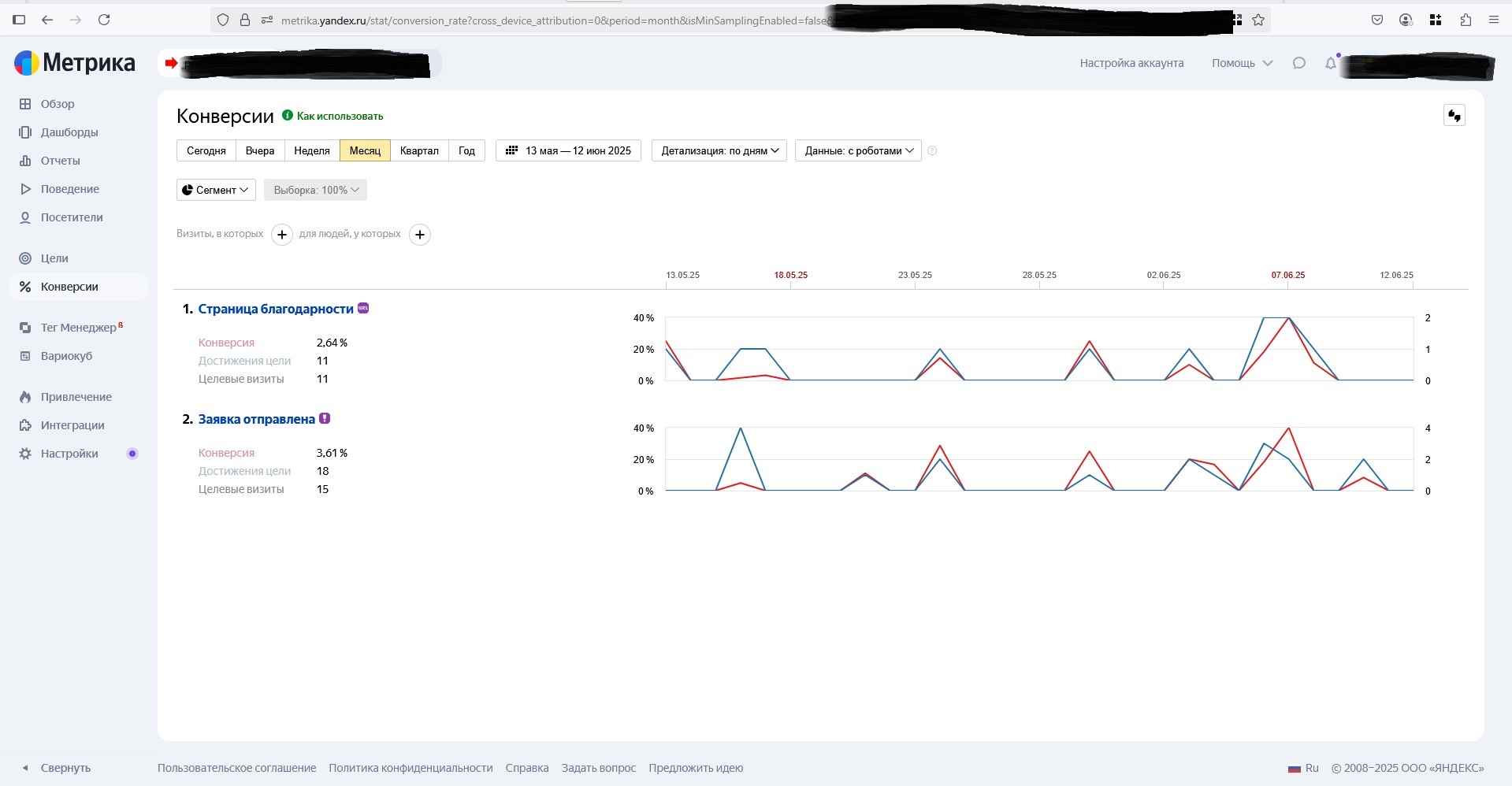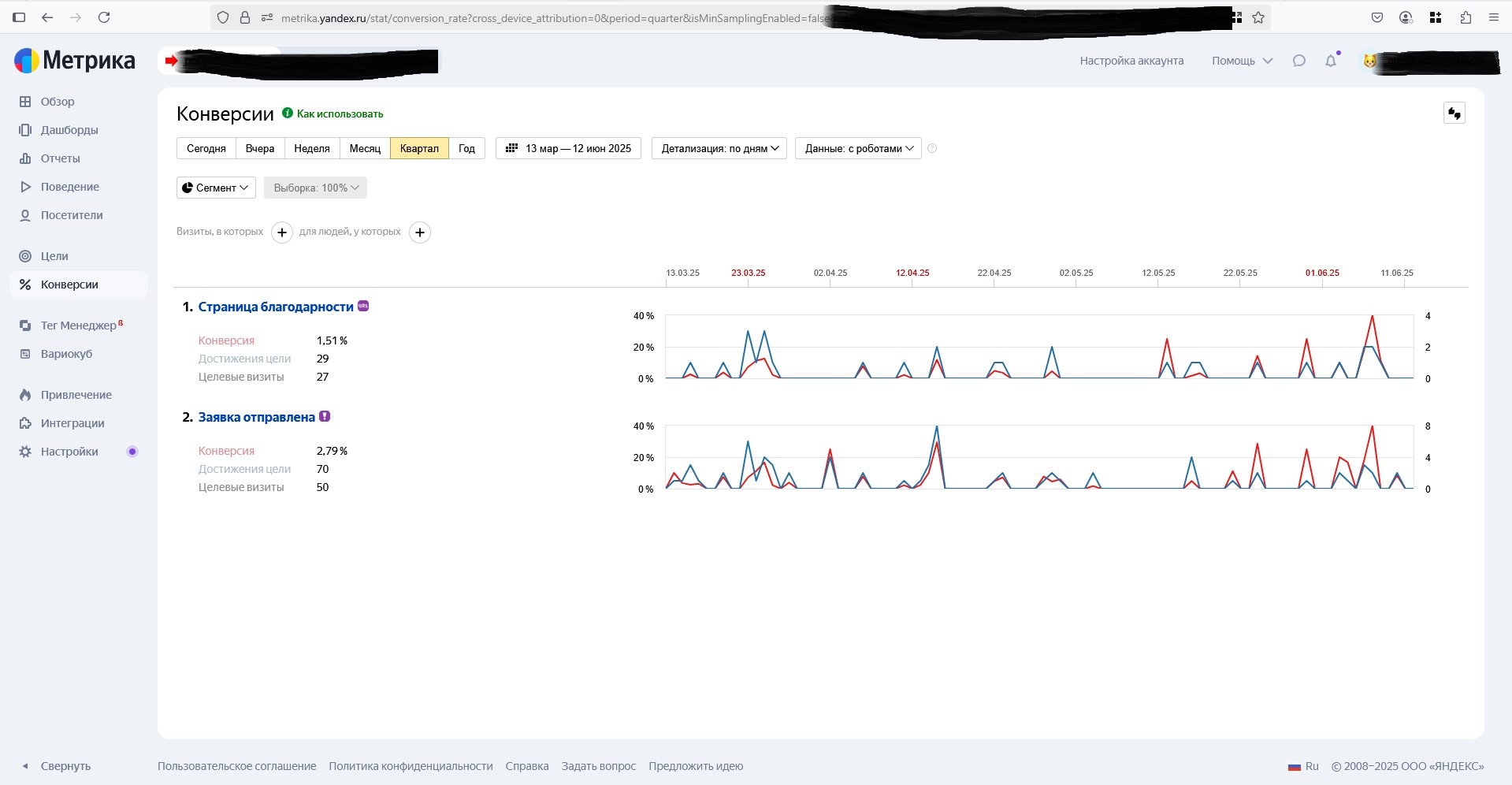 Как видно на скринах, средняя стоимость лида мало менялась втечение года, за исключением одного периода 2-3 месяца назад. Средняя стоимость заявки на этом аккаунте тогда по непонятной причине выросла в 3,5 раза, что заметно по средней цене лида за 90 дней. Но поскольку другие два аккаунта этого клиента давали лиды даже дешевле, чем обычно, средняя стоимость лида по всем трем аккаунтам его устраивала, и поэтому рекламу мы не останавливали.